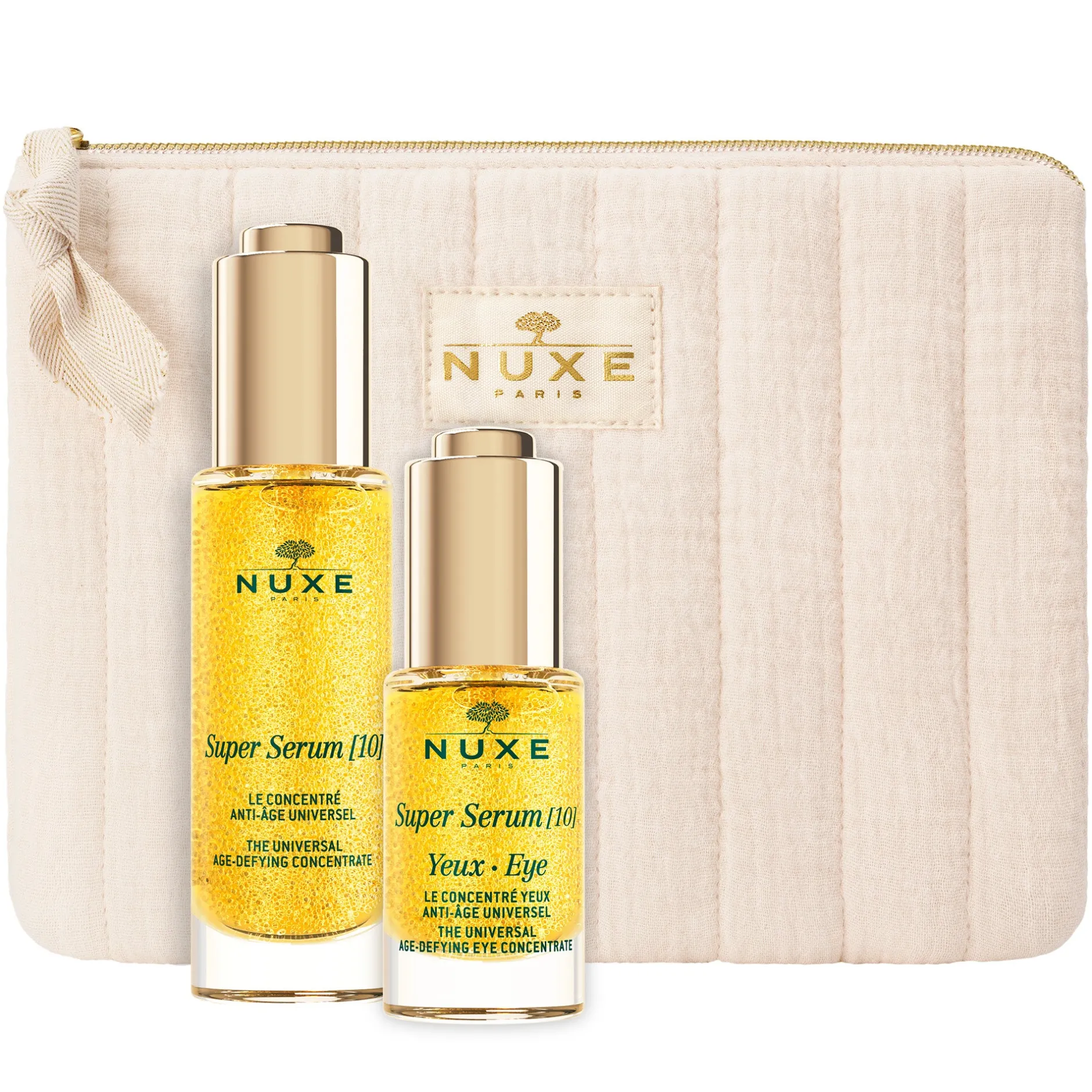 Entdecken Sie die Super Serum [10] Gesichts-Routine und das Super Serum [10] Augen-Routine. Das Kit enthält: – 1 Super Serum [10], Das universelle Anti-Aging-Konzentrat 30 ml – 1 Super Serum [10] Augen – Das universelle Anti-Aging-Augenkonzentrat 15 mlund eine beigefarbene Leinentasche. Die Bestandteile der Routine werden separat geliefert.Nicht vertragliche Abbildungen.